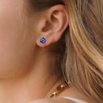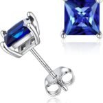 Minimalist Princess Cut Sapphire Stud Earrings | White Gold