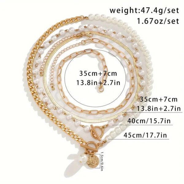 Vintage Pearl & Gold Snake Chain Necklace Set | Gold