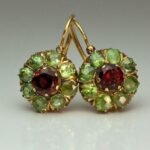 Vintage Rounded Green & Red Crystal Earrings | Gold